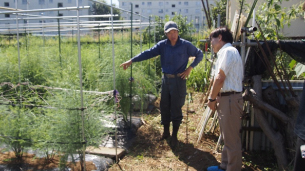 多摩市は、地元農家さんの栽培支援のため、平成29(2017)年から明治大学とサナテックシード株式会社と共同で「アスパラガスの採りっきり栽培」の共同研究を行っています。